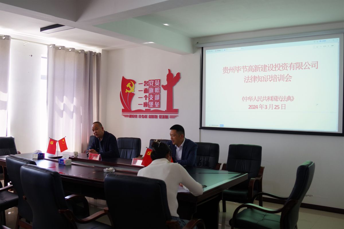 为进一步提升企业在合同管理中的风险防范意识和能力,深化公司员工对《民法典》合同篇的全面理解,并切实增强企业员工在合同签订、履行及纠纷处理过程中的风险防范能力,3月25日,毕节高新建设投资有限公司邀请我所行政法律事务部主任(贵州工程应用技术学院法学副教授、我所兼职律师)李军作专题讲座。毕节高新建设投资有限公司党委副书记唐贤品主持会议。