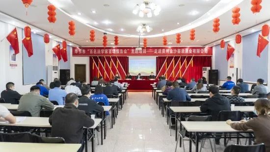为扎实开展基层普法宣传和法律服务工作,让广大干部职工充分学习《民法典》并运用到日常工作中,4月7日下午,毕节市“百名法学家百场报告会”主题培训走进贵州金沙窖酒酒业有限公司。
