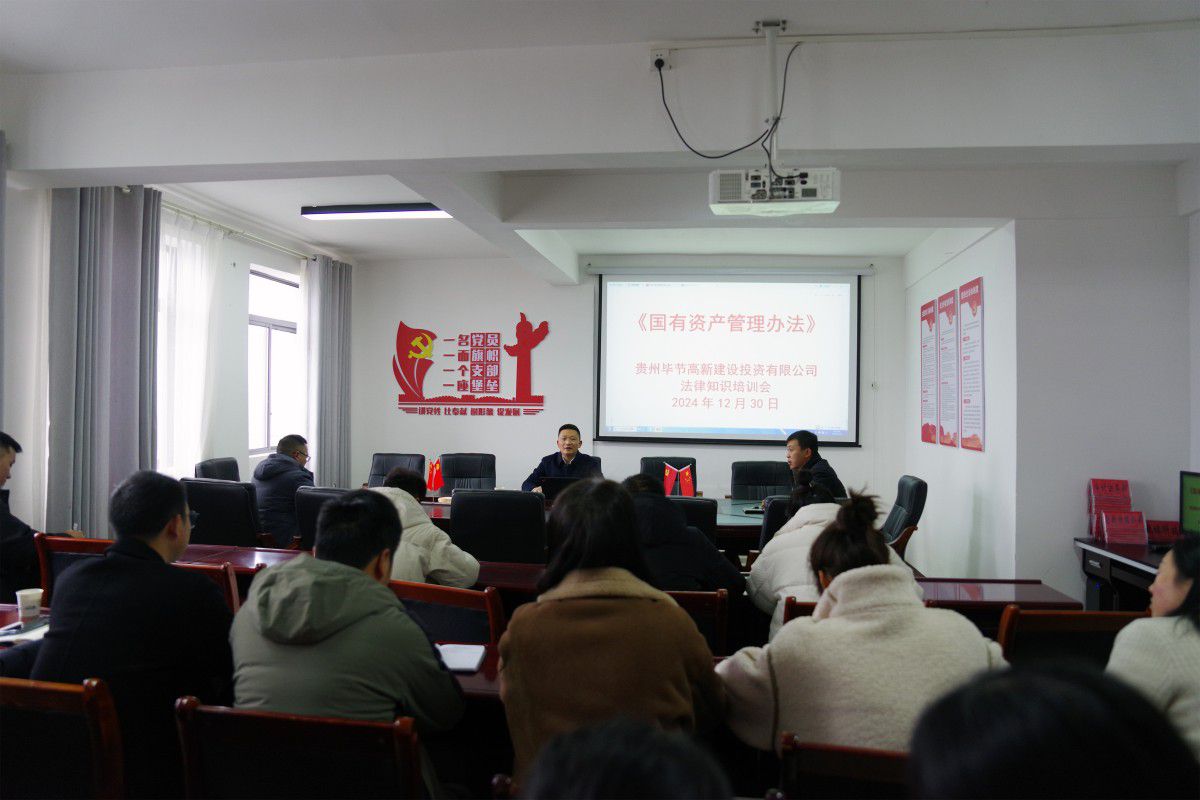 为加强国有企业法治建设和风险防控,2024年12月30日,贵州毕节高新建设投资有限公司开展法律知识培训会,我所行政法律事务部主任(贵州工程应用技术学院法学副教授、我所兼职律师)李军受邀作专题培训。