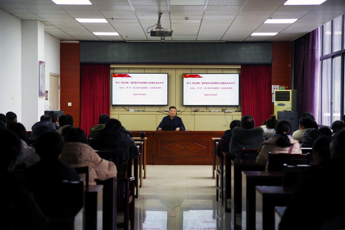12月20日下午,毕节市第三人民医院邀请我所行政法律事务部主任(贵州工程应用技术学院法学副教授、我所兼职律师)李军作《民法典》专题培训,旨在增强医院职工对《民法典》的理解与应用能力,进一步提高医疗纠纷预防与处理的法治化水平。