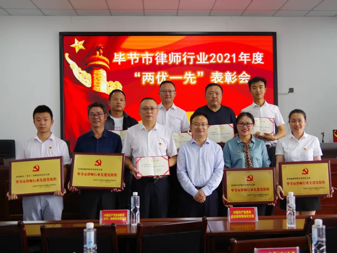会议对荣获“贵州省律师行业先进基层党组织”、“贵州省律师行业优秀党员律师”、“贵州省律师行业优秀党务工作者”的组织或个人进行表彰。贵州本芳律师事务所党支部荣获“毕节市律师行业先进党组织”称号,织金分所杨国彪同志荣获“优秀共产党员”称号。
