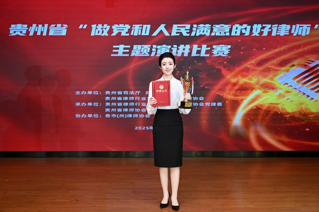 2025年9月29日下午,由贵州省司法厅、共青团贵州省委、贵州省律师行业党委、贵州省律师协会联合主办的全省“做党和人民满意的好律师”主题演讲比赛决赛在贵阳市圆满落幕。我所周梦娇、龚玉婷两位律师从全省各市(州)初赛晋级的优秀选手中脱颖而出,分别斩获二等奖与三等奖,再度彰显我所律师的专业风采与责任担当。