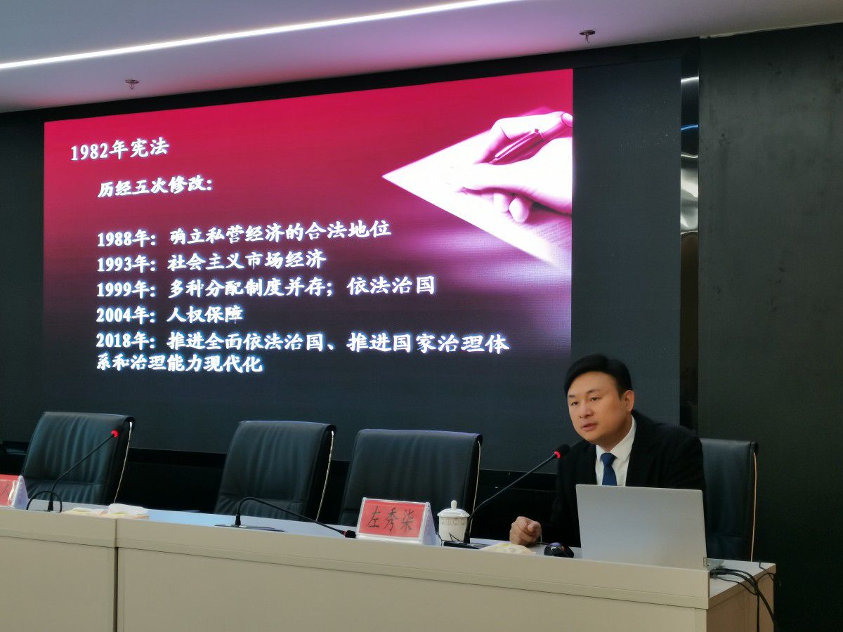 今年12月4日是我国第十一个国家宪法日,也是我国现行宪法公布施行四十二周年。为深入学习贯彻落实习近平法治思想,大力弘扬宪法精神,推动进一步全面深化改革,实现全面依法治企,12月2日上午,毕节市农业发展集团有限公司邀请我所管委会主任左秀柒作《宪法》专题培训。农业集团公司各部室负责人及相关工作人员、下属多家子公司和县区公司的法治工作分管领导和相关工作人员参加培训。
